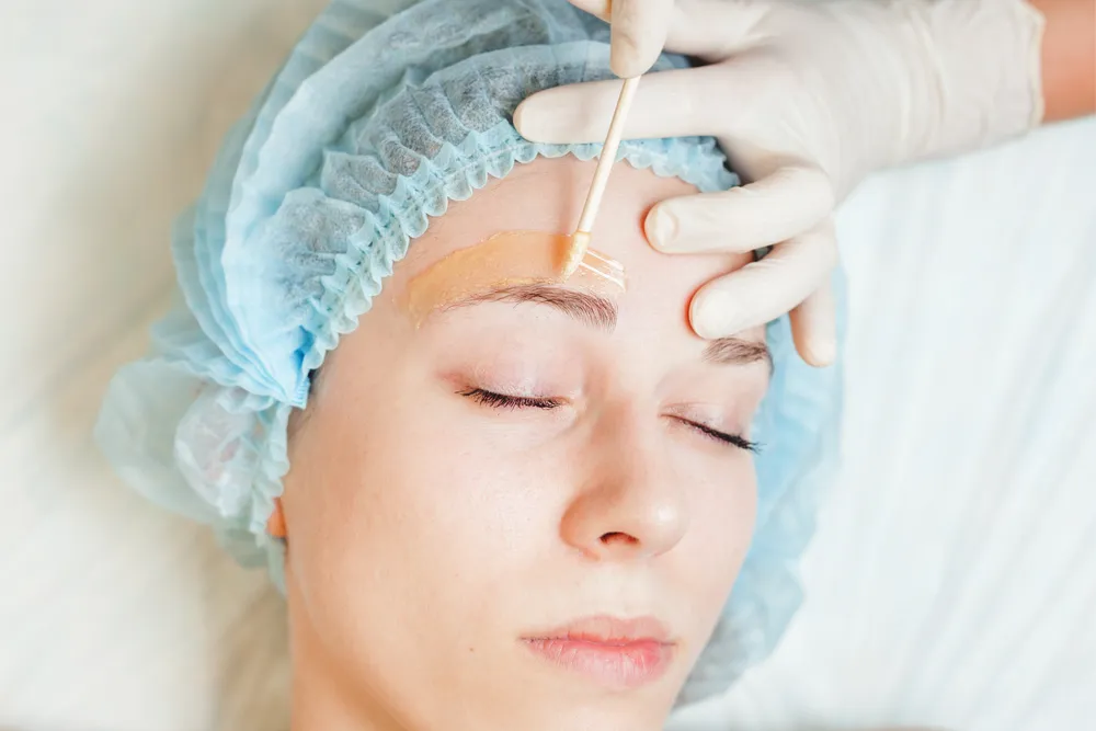 Waxing the brows entails applying a thin layer of hot wax over the unwanted hairs. A thin strip of paper is placed on top of the wax and gently pressed, then immediately pulled away, carrying the brow hairs with it.